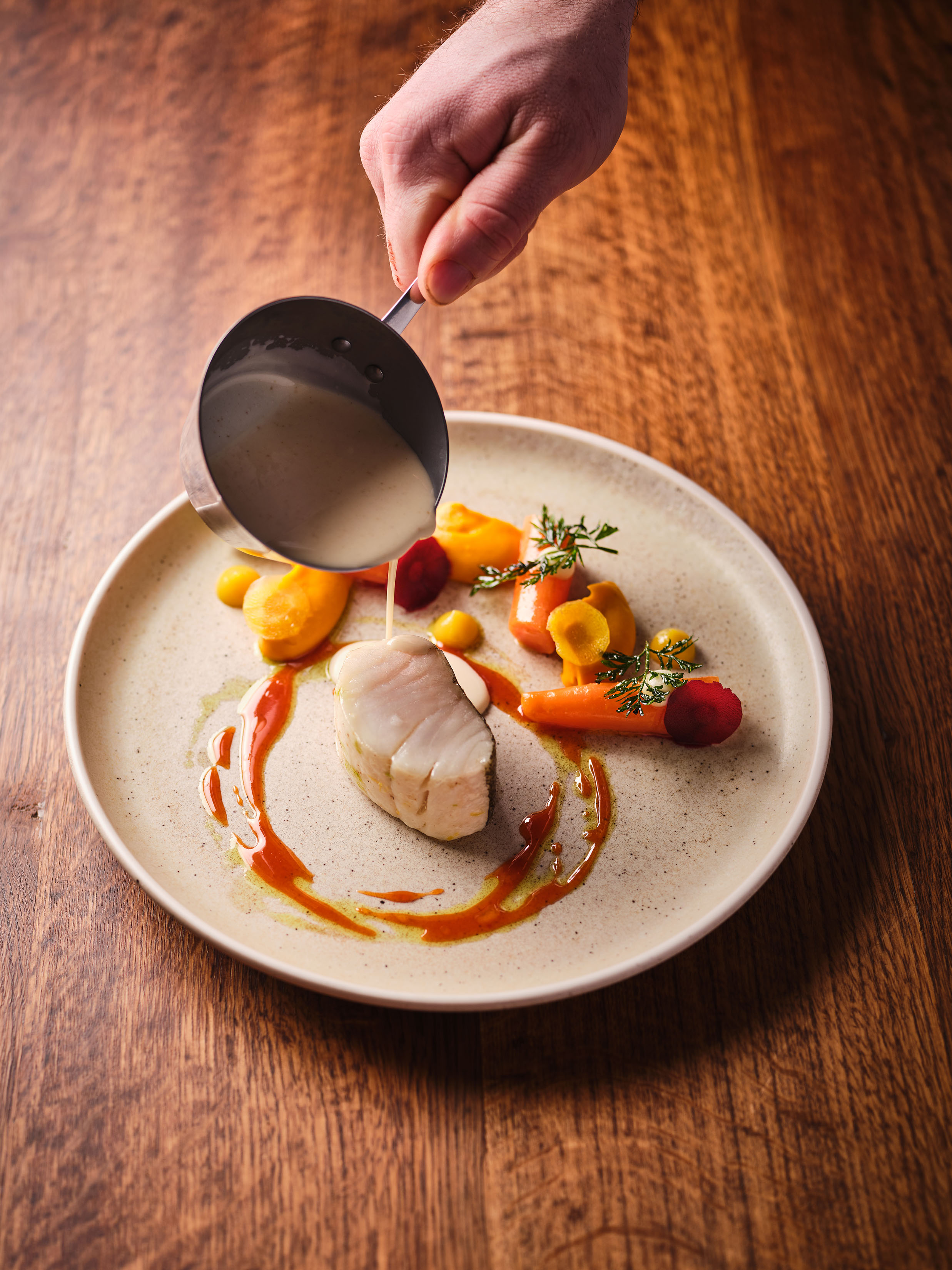 He has an exceptional mastery of flavors to create innovative pairings (land-sea pairings: lobster and beet, Jonh Dory and its vegetable bouquet...).