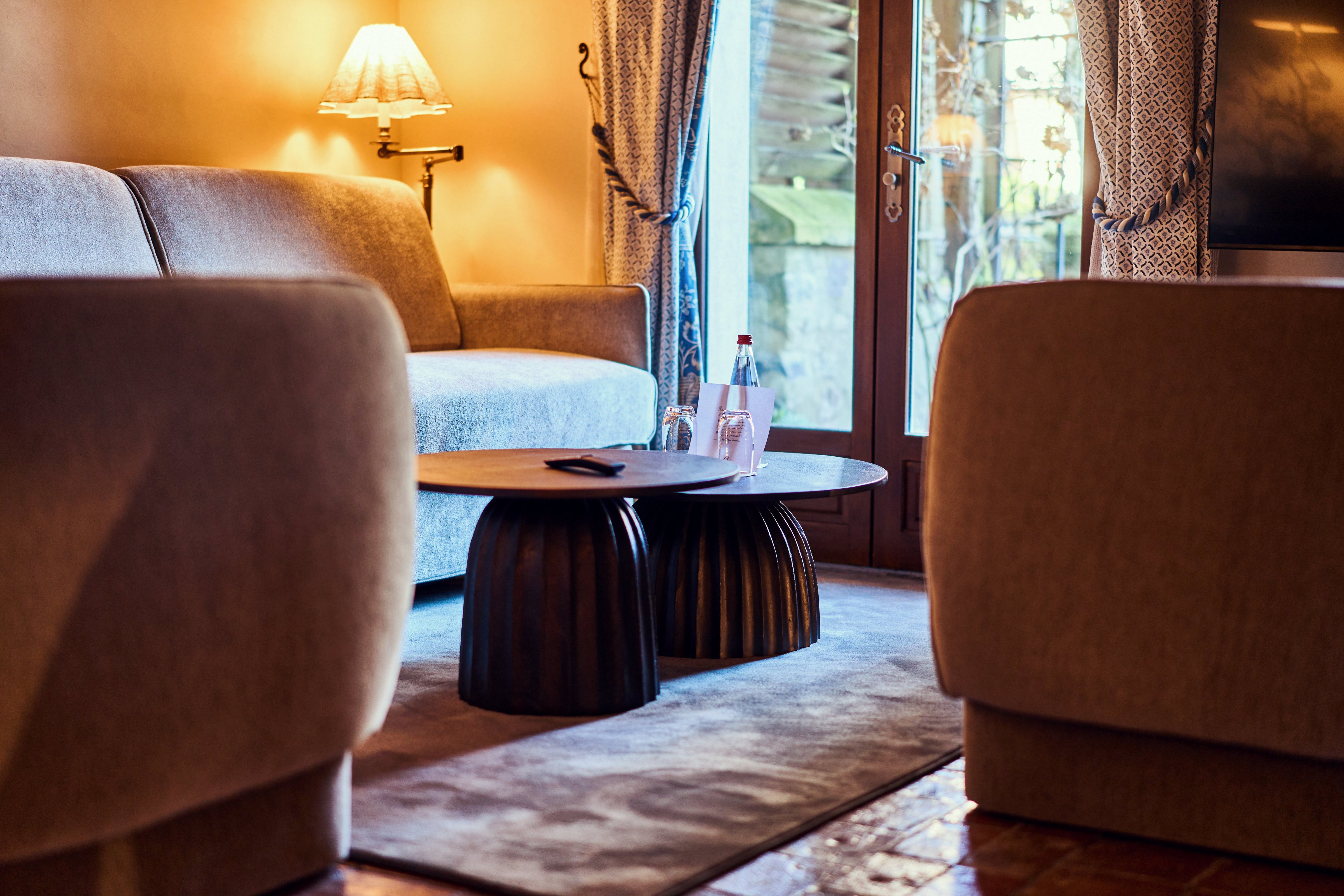 During your stay, enjoy free access to the spa Loiseau des Sens.These junior suites of 55 square metres, exposed beams are combined with shades of burgundy red, blue, or light colors. Some have a private garden with direct access to the park, others have a fireplace or an atypical bathroom. Stylish furniture and fine chests of drawers add the finishing touches.