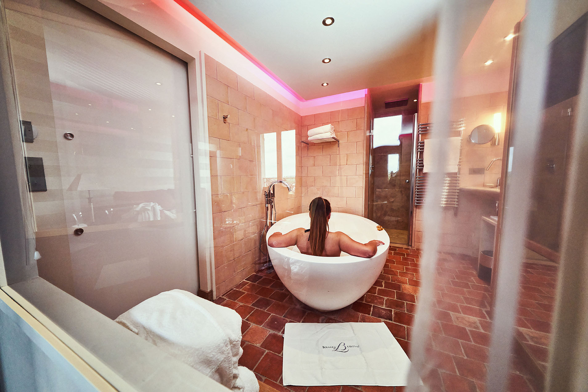 During your stay, enjoy free access to the spa Loiseau des Sens.Two of our suites have a fireplace, a living room with a cocooning style, and two others are duplex (with mezzanine). There is also a family suite with a unique surface area of 80 square metres. The rooms are located on a separate floor around a beautiful entrance, which gives the impression of being in a house. In addition to its beautiful bedroom, the attic suite, with French ceilings, offers a separate living room with a beautiful fireplace and a balcony overlooking the garden.
