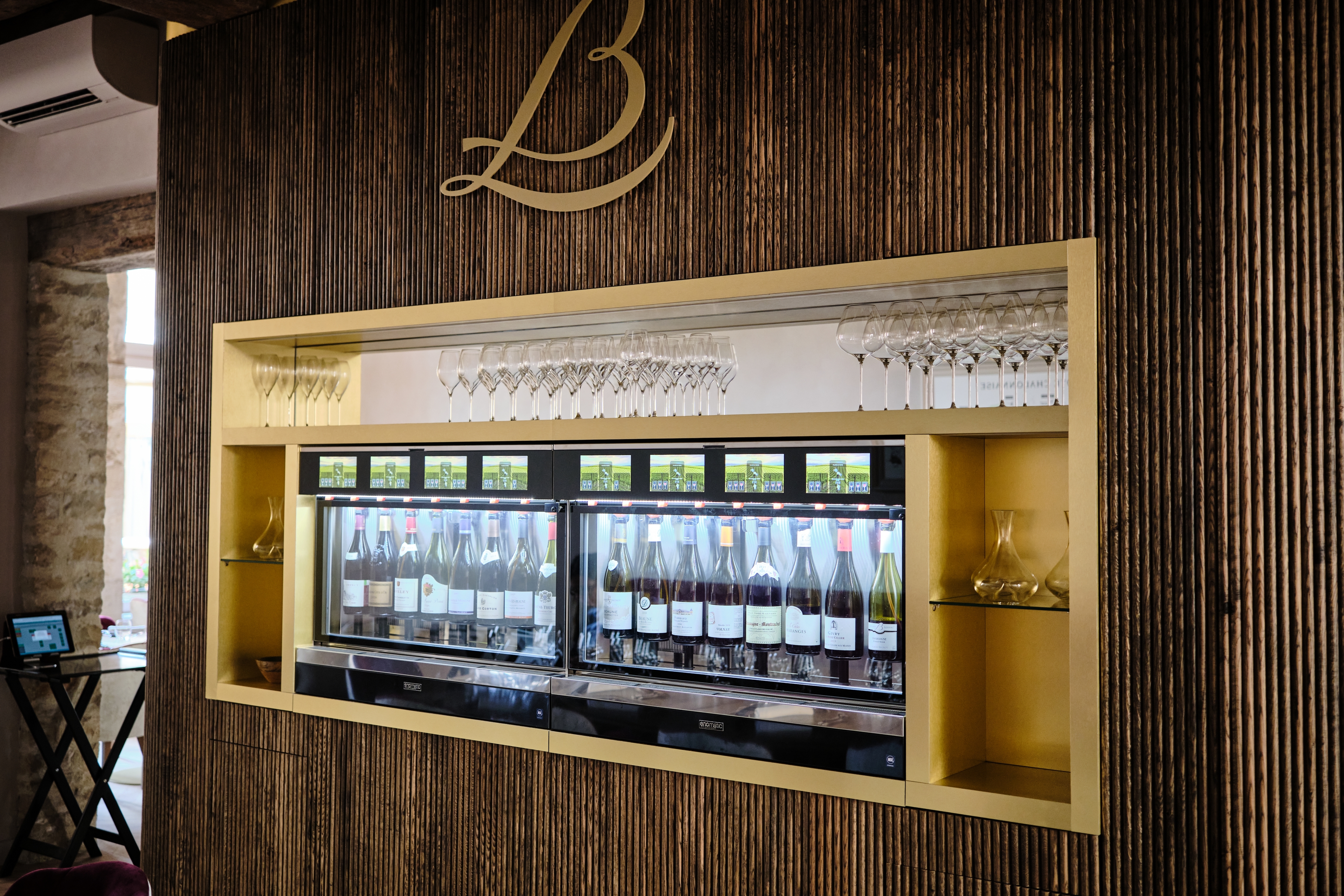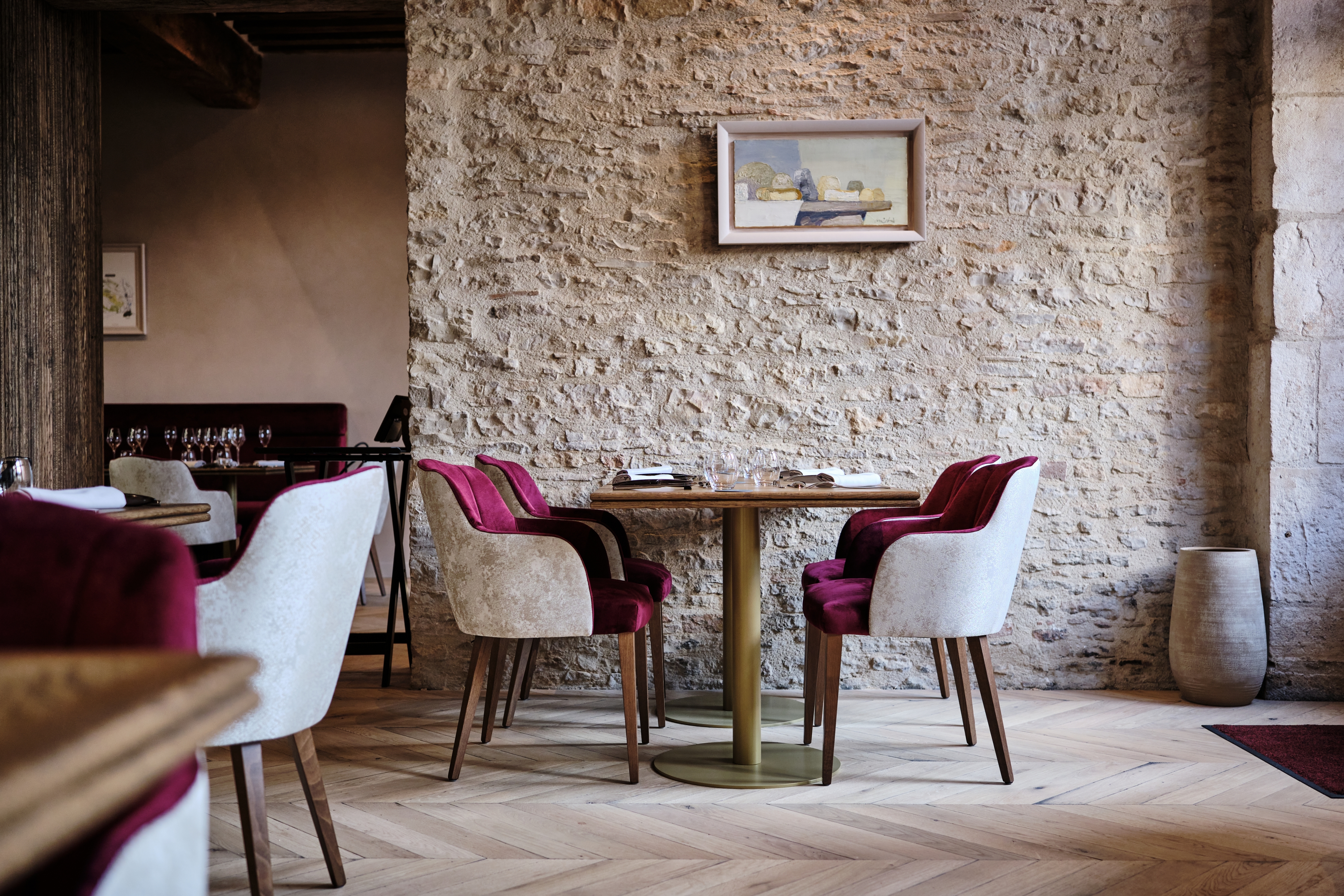 In the heart of the wine capital of BurgundyOpened in 2007, the "Loiseau des Vignes" restaurant is located in the heart of Beaune, near the famous Hospices, right next to the prestigious Le Cep hotel. Wood is omnipresent and brings warmth and conviviality: oak is molded on the central wine cellar, solid oak on the tables and herringbone on the parquet floor. It echoes the natural stone as well as the purplish natural lime which alternate on the walls. In the summer, the restaurant can set up to nine tables on the terrace in the splendid interior courtyard.