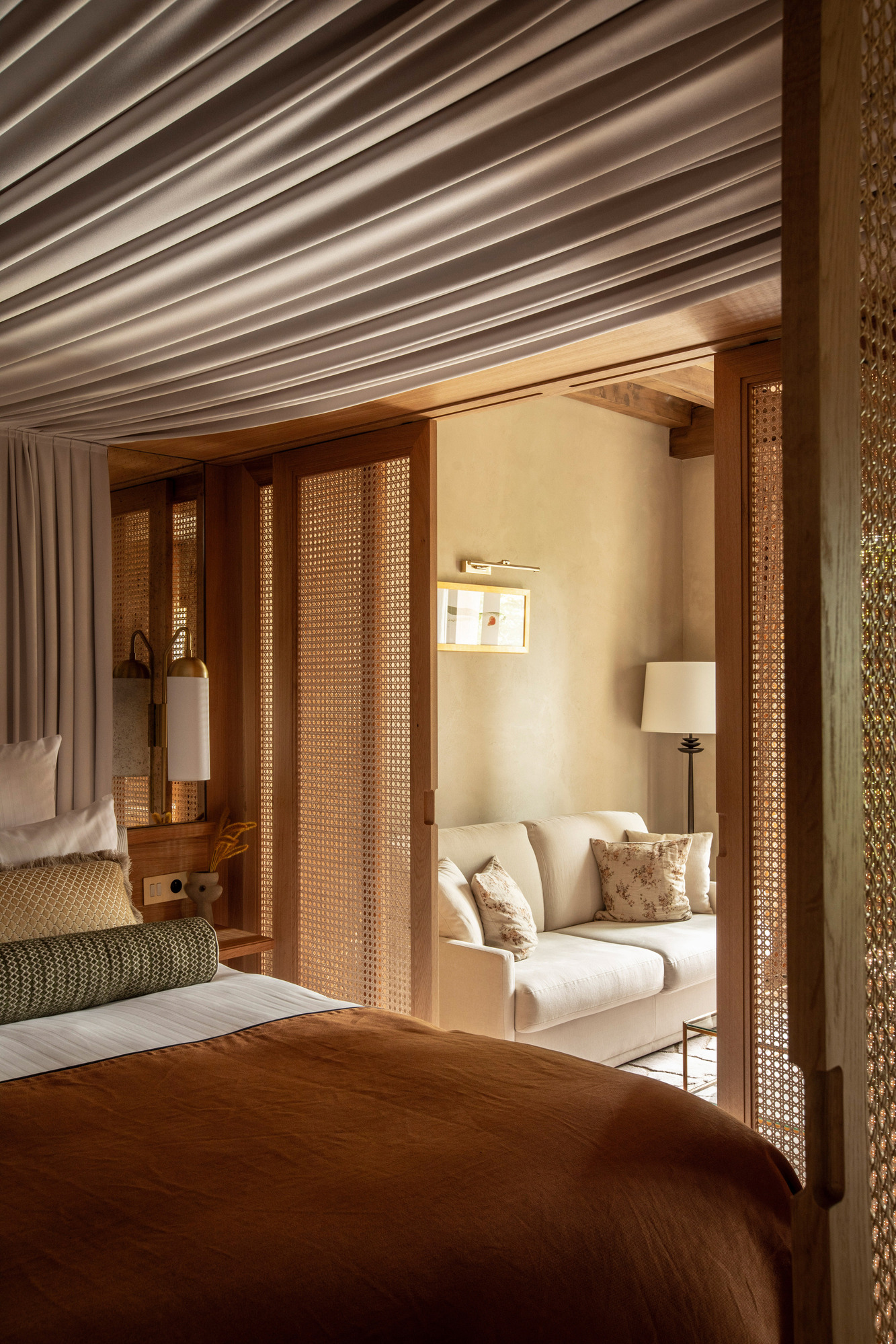 Découvrez nos deux nouvelles suites ancrage 2023 !Pensés pour sacraliser le moment du coucher, des cocons, tout en bois et cannage, entourent le lit, donnant une sensation très cosy. Les teintes du marbre répondent aux couleurs chaudes des tomettes, et le nouveau mobilier moderne et cossu fait ressortir à merveille les poutres en chêne massif. Une nouvelle expérience d’innovation dans la tradition au sein de notre Relais&Châteaux historique.